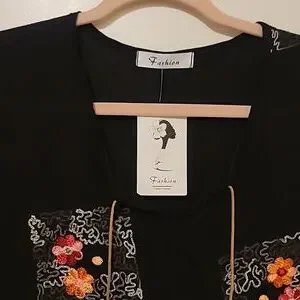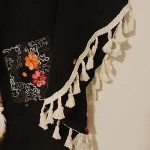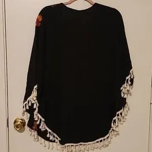 women's embroidered poncho with V neck. tassels at trim. one size , nwt.