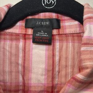 J. Crew Women’s Flannel Long Sleeve Pajama Top in Blush Tartan Sz L BD198