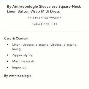 ✨ Anthropologie Sleeveless Square-Neck Linen Button Wrap Midi Dress Sz L