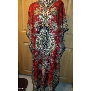 Women Long Kaftan Women One Size Maxi Dress Beach Caftan Poncho Red