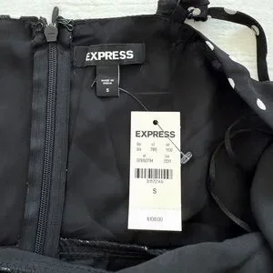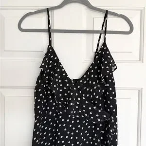 Express black & white polka dot midi dress with ruffle detail