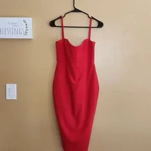 The Nookie Allure Midi Dress is a simple yet perfect midi dress that fits like a glove. Made from a structured, form fitting woven polyester spandex. Fully lined with an invisible zipper at the center back.