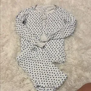 Adorable pajama set with blue heart pattern. Soft and comfortable for bedtime.