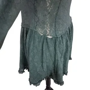 Elevate your style with this chic forest green lace dress. Featuring long sleeves and a graceful design, it's perfect for any occasion. this is a project dress it does have some holes at the seams very easy to fix I just didn't want to take the time.
