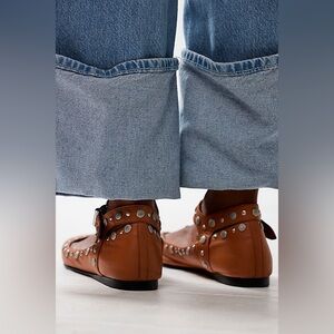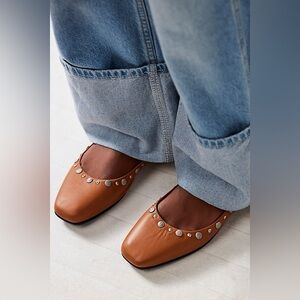 Slip into these so chic flats featured in a buttery soft leather with an adjustable ankle strap, stunning studded details, and a classic round toe.