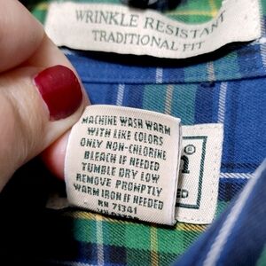 L.L. Bean Blue Green Plaid Long Sleeve Button Down Shirt Mens Size Large L