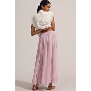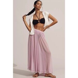 By Anthropologie Sheer Maxi Skirt Floral Cutwork High Low Pull-on XL New 281276