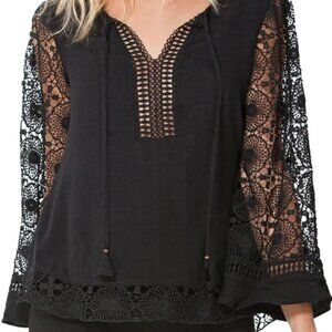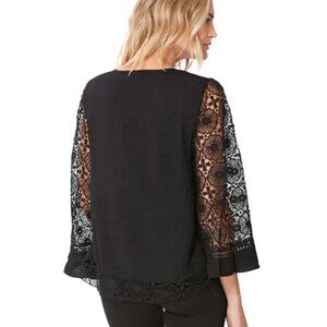 NEW Hale Bob Black Lace Cut-Out Tunic Top