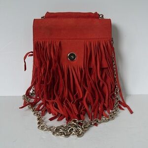 & Other Stories Orange Suede Fringe Crossbody Bag Boho Festival Purse Gold Chain