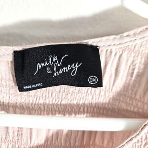 Milk & Honey Womens Plus Size 3X Short Sleeve Pink Crochet detail gathered sleev