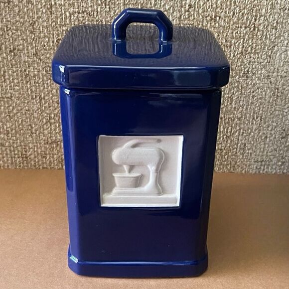 Vintage Roshco TileWare Cobalt Blue Mixer Graphic Tile Ceramic Square Canister