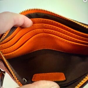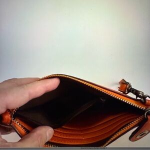 NWOT Just Millie orange leather Crossbody wristlet clutch