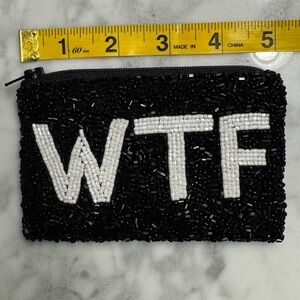 MOYNA “WTF” Black and White Beaded Zipper Pouch 5x3”
