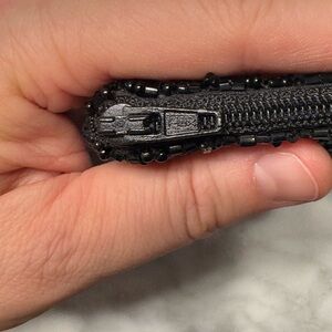 Sassy with style, this is a high quality fully beaded piece with black satin lining (with interior card pocket) and zipper closure.