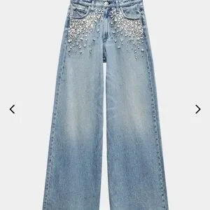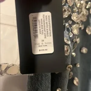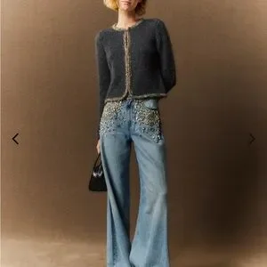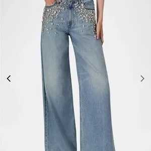 Light blue jeans with sparkling embellishments. Flare and wide leg design. Chic and stylish. Super comfortable from the softie collection with Rag & Bone