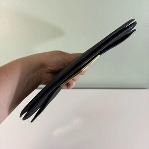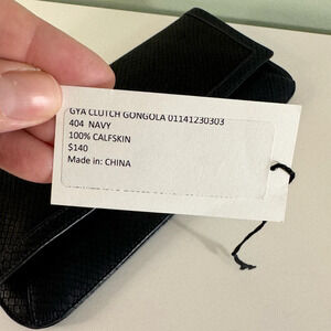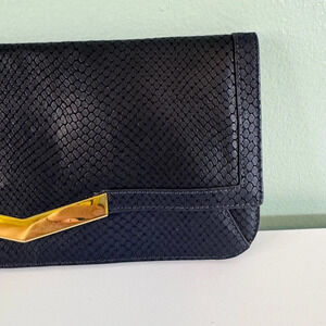 Time's Arrow Calfskin Gya Clutch Gongola Purse Flap Over Evening Party Prom Navy