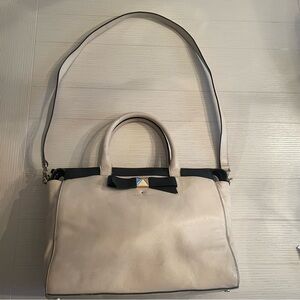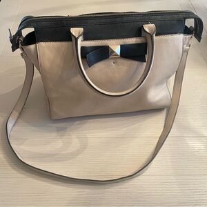 Kate Spade Pebbled Leather Satchel Shoulder Bag Black Nude Bow Purse