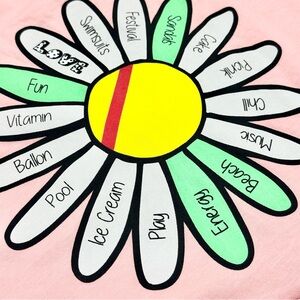 Charming pink dress with a bold daisy graphic. Perfect for casual outings.