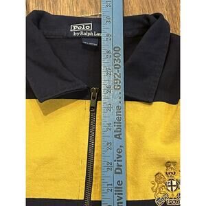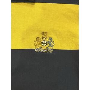 Y2K Vintage Polo RL Rugby Shirt XL Lion & Unicorn Crest Blue Yellow Stripe Zip