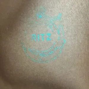 There is a worn stamp on the inside with the word “Ritz” still legible.