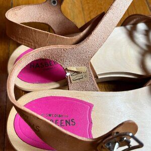 Swedish Hasbeens 38 “Ornament” clog sandals in natural tanned leather