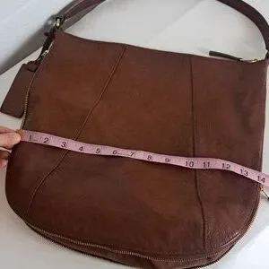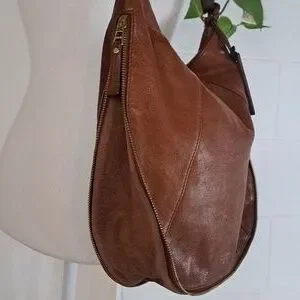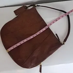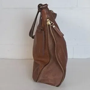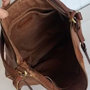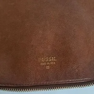 Fossil large leather shoulder bag zipper detail gold brass hardware