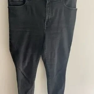 Sleek and stylish black skinny jeans. Perfect fit for any occasion. Comfortable and versatile. Size 32/14r. Good stretch, but holds shape well. Vintage black color. Great condition.