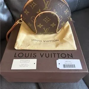 Elegant Louis Vuitton clutch. Features iconic monogram pattern. Perfect for any occasion.