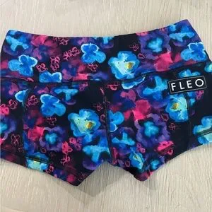 Fleo Women's Athletic Shorts - Blue and Pink Floral