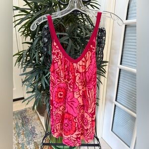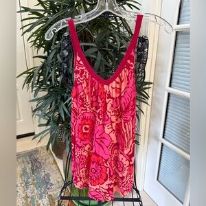 Free People vibrant multi-color pink tank top with floral pattern. Sleeveless design. Perfect for casual wear. X-Small. However, the top fits more like a size small.