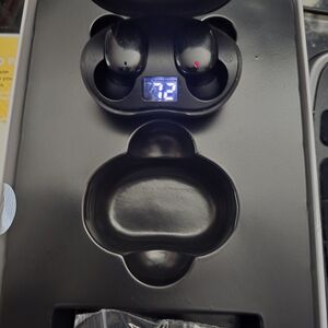 Enjoy superior sound quality with black earbud headphones. These earbuds come with a portable charging case, offering up to 18 hours of playtime and a wireless range of 30 feet. Experience powerful bass and high-resolution audio.