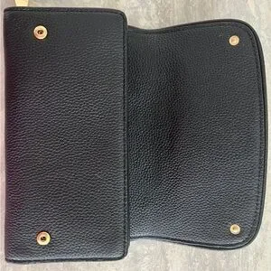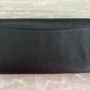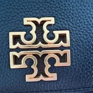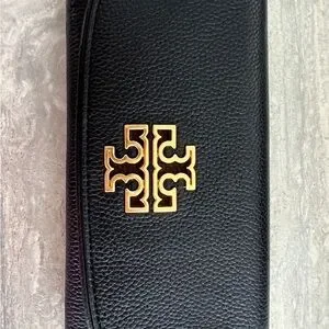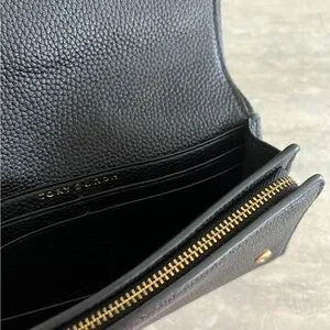 Authentic Tory Burch Black Leather Wallet with Gold Emblem
