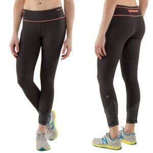 Lululemon Pace Queen Tight in Soot gray with coral accents