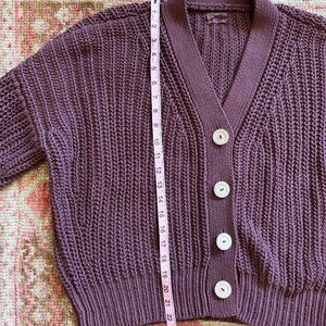 Thick rib cotton cardigan – cool and comfy with a chunky structure and dropped shoulders. Bracelet length sleeves, made to be worn above the wrist. Knitted in our local cotton. A very special yarn grown, harvested and spun in Andalucía, Southern Spain. All natural, soft, robust and full of personality. This is one of our ECO COLOURS: we garment dye our natural cotton using the latest technology – 60% less water, no bleaching, no toxic waste and environmentally friendly colouring. Vegan friendly.