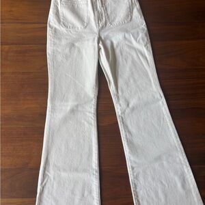Classic and flattering high-rise J. Crew jean in Ecru. NWT never worn. Stretch. Fitted through hips and thighs with slight/moderate flare. Perfect for the office, night out, church — wear anywhere and style up or down! A closet must-have.