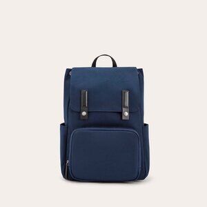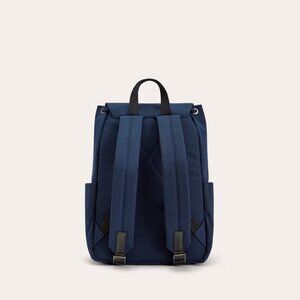 Get organized and look good doing it. Spacious enough to stash all your essentials, easy to pack (and find everything), this backpack is ready for any travel situation you throw at it. Its front snap closure has a drawstring for extra security, and it features a front zippered compartment, and exterior metal zipper pocket for even more storage. It also has adjustable straps, a top handle, and side water bottle pockets. Made with recycled canvas, featuring leather trim details that give it a heritage vibe.