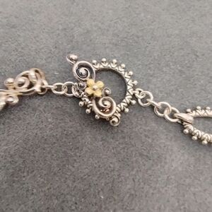 This stunning silver necklace and earring set features intricate detailing, perfect for adding elegance to any ensemble. Ideal for both special occasions and everyday wear. 20" Long both necklace and earrings has 18K gold flower accents