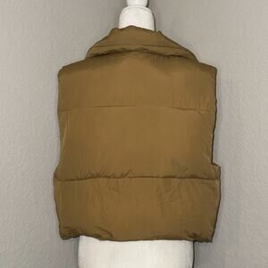 Fashion Puffer Vest Jacket Womens XL Brown Sleeveless Cropped Full Zip Outerwear.