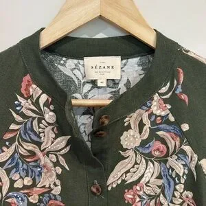 SÉZANE Caprice Dress in Olive Green Floral Border sz US 8 / FR 40 NWOT