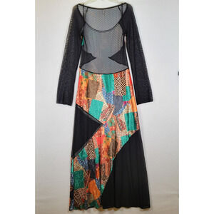 Free People Womens Parker Patchwork Velvet Sheer Maxi Dress Size Small Black