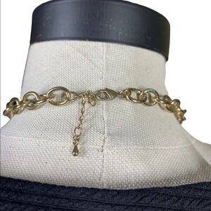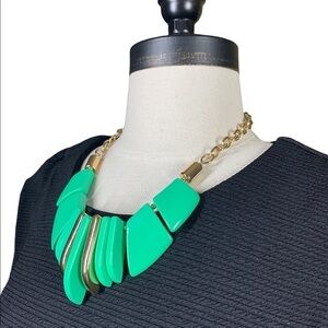 Cute vintage inspired statement piece. Gold tone chain with mint and gold chunky plastic pieces