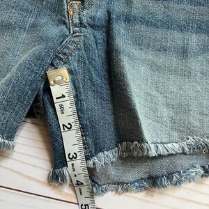 NWT Trendy and comfortable Abercrombie Kids denim midi shorts in girls size 11/12. Classic medium wash with light distressing, frayed hem, and the perfect mid-length for everyday wear. Designed with 5-pocket styling, button closure, NO ZIPPER and soft, durable denim.