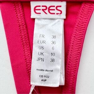 French 38 = Size 6 in US - please know your size in ERES as brand is known to run small. LISTING IS FOR BIKINI TOP ONLY Brand new with tag attached - pristine condition (style information is blurred on paper hang tag). Comes with branded ERES plastic zip pouch. Bikini Top is a bright fuchsia color. *I’ve done my best to accurately represent the item’s color-may differ due to lighting conditions Style name is “Pop Roller” or “Roller Pop” Made in Morocco. 77% polyamid and 23% spandex