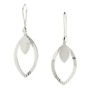 Exciting and new. Diamond-cut details lend striking sparkle to the large, open, marquise-shape that anchors these drop earrings. A smaller, polished marquise shape shines on the top, with the word “Love” engraved along the side. From Mary Margrill Spiritual Inspirations.