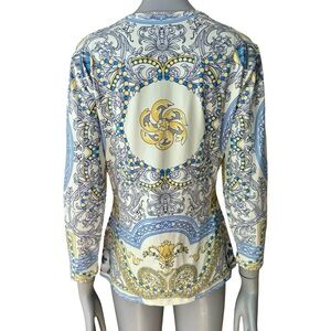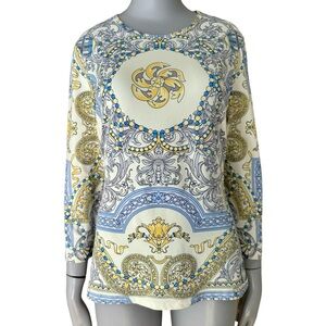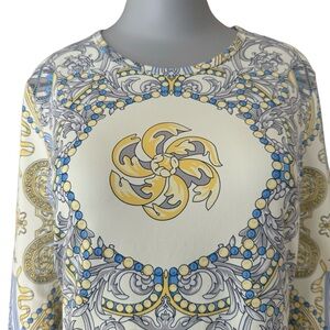 J. MCLAUGHLIN Catalina Cloth Signature Tee Art To Wear Medallion 3/4 Sleeve