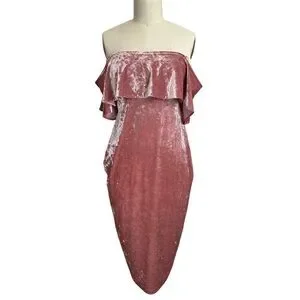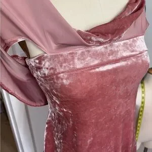 Mama to be! Step out in style with this elegant pink velvet off-shoulder dress. Perfect for a special occasion, this dress offers a flattering fit and a luxurious feel. Super stretchy, side ruched, knee length, elastic support band at top.