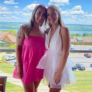 Turn heads with this chic white backless halter dress. Perfect for any event, its elegant design ensures you stand out.