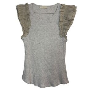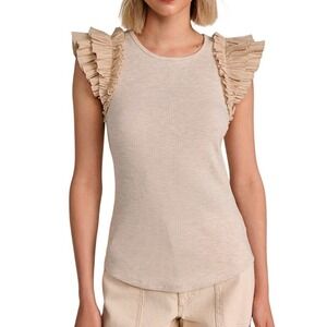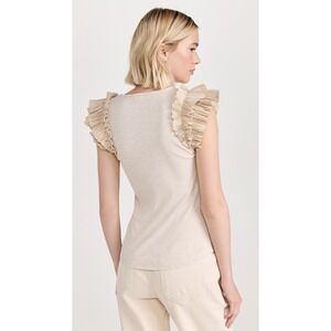 Ulla Johnson Lilo Top in Cobblestone tan with ruffle shoulders Medium