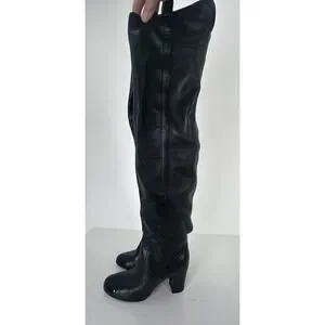 ⭐️ Chanel Black Leather Cap Toe Over The Knee Boots Sz 37 / 7