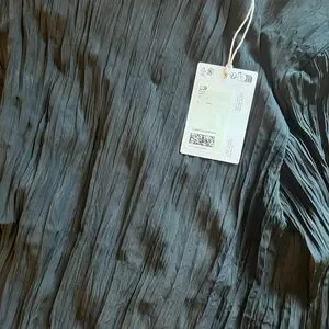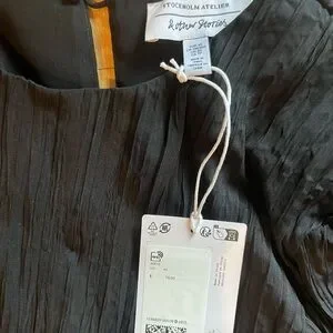 Elegant black blouse with pleated design. Features a round neckline. Ideal for sophisticated looks.